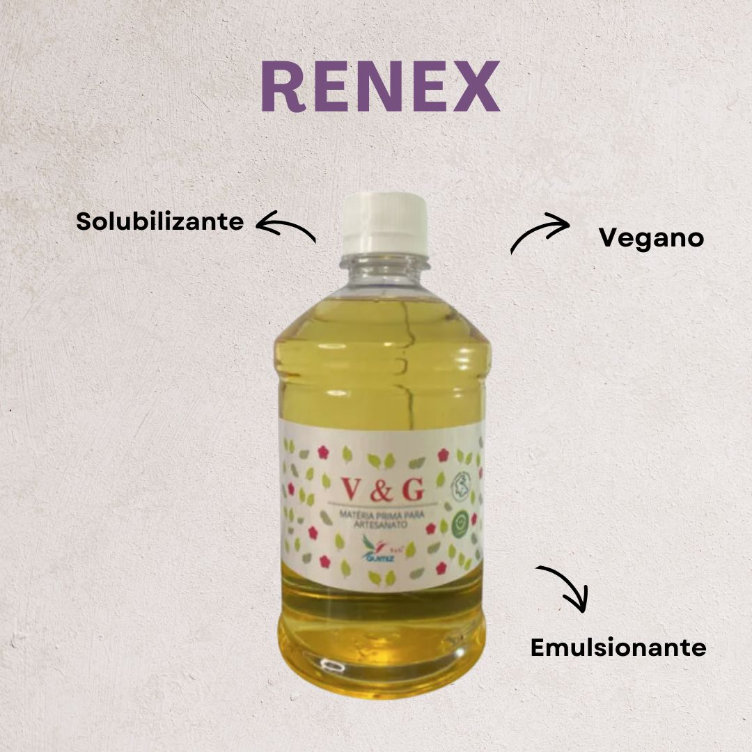 Renex é utilizado como solubilizante, amplamente utilizado para dissolver a essência na água. Utiliza-se o Renex em Essências a base de óleo. Características do produto: Emulsionante, solubilizante, umectante, desengraxante e dispersante. Solubiliza essências tornando as essências oleosas em hidrossolúveis. Tensoativo não-iônico. Utilizado na fabricação de produtos de limpeza em geral como detergentes, desinfetantes, limpadores, ceras, polidores, pedras e barras sanitárias, limpadores abrasivos, polidores de prataria, detergentes para lavagem de roupas, mãos, peças automotivas, shampoos para automóveis, limpa-vidros e etc.
